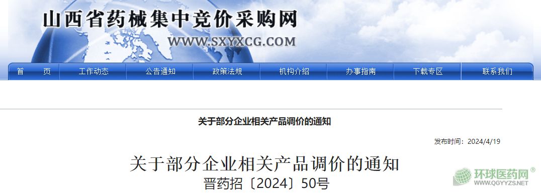 近日,山西省藥械集中招標采購中心發(fā)布《關(guān)于部分企業(yè)相關(guān)產(chǎn)品調(diào)價的通知》(晉藥招〔2024〕50號),10個產(chǎn)品對掛網(wǎng)價格進行了調(diào)整。(詳見附件)
