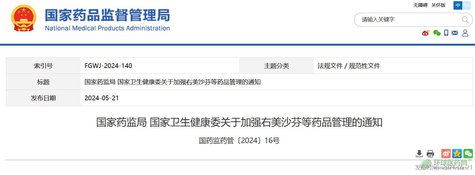 2024年05月21日,國家藥監(jiān)局發(fā)布了《關(guān)于加強(qiáng)右美沙芬等藥品管理的通知》,要求自2024年7月1日起,未取得相應(yīng)品種定點(diǎn)生產(chǎn)資格和生產(chǎn)需用計(jì)劃的企業(yè)不得生產(chǎn)右美沙芬、納呋拉啡、氯卡色林、含地芬諾酯復(fù)方制劑、咪達(dá)唑侖原料藥和注射劑。上述品種不得委托生產(chǎn)。