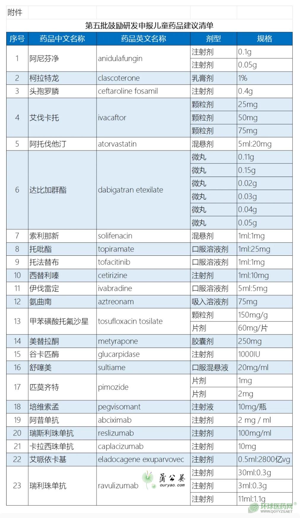 附件:第五批鼓勵(lì)研發(fā)申報(bào)兒童藥品建議清單
