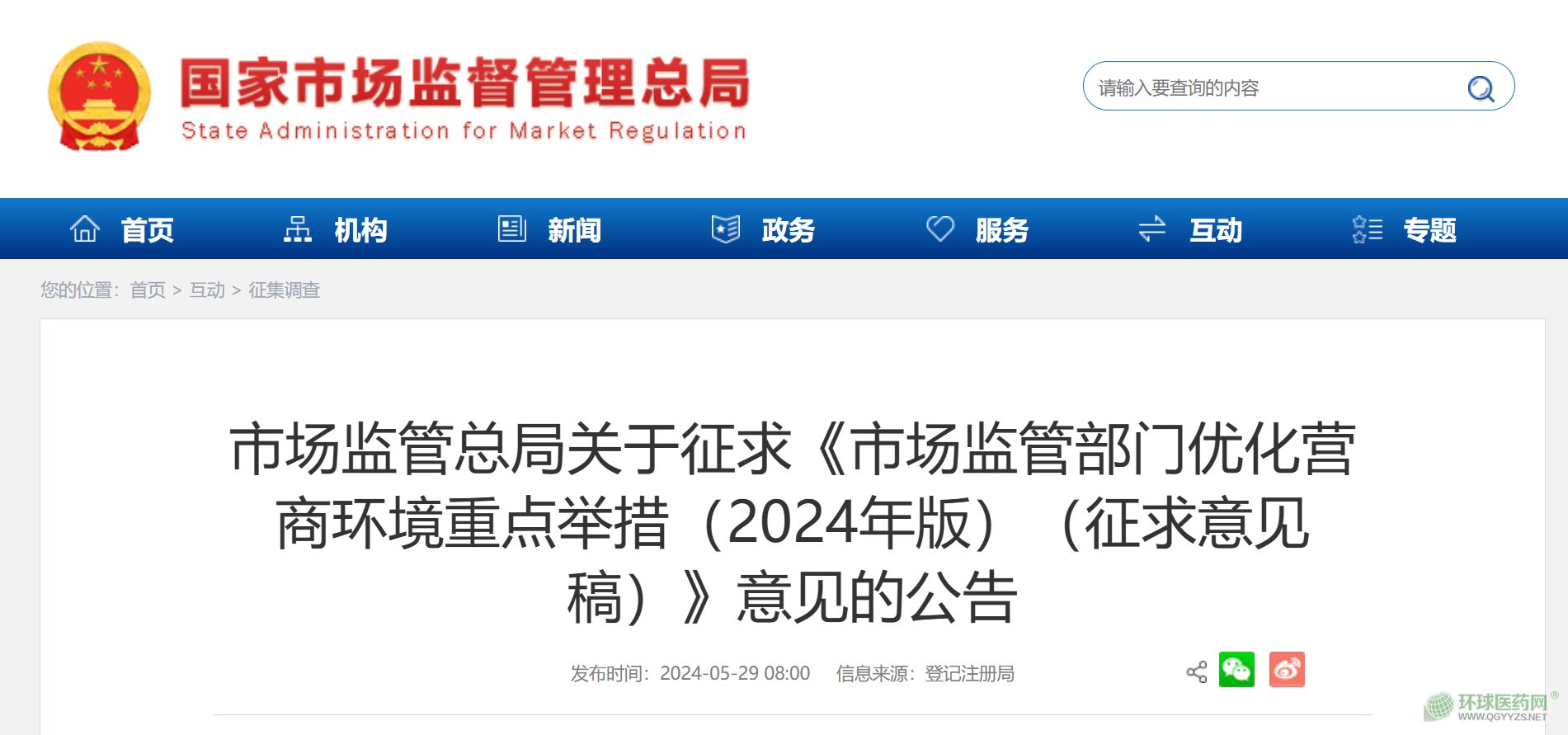 近日,國(guó)家市場(chǎng)監(jiān)管總局發(fā)布《市場(chǎng)監(jiān)管部門(mén)優(yōu)化營(yíng)商環(huán)境重點(diǎn)舉措(2024年版)》,向社會(huì)公開(kāi)征求意見(jiàn)。