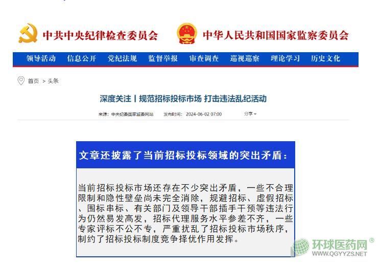 6月2日早上,中紀委網(wǎng)站發(fā)布了題為《深度關注丨規(guī)范招標投標市場 打擊違法亂紀活動》的頭條文章。其中指出,招標投標領域面廣環(huán)節(jié)多、政策專業(yè)性強,也是權力尋租和腐敗問題易發(fā)高發(fā)領域。