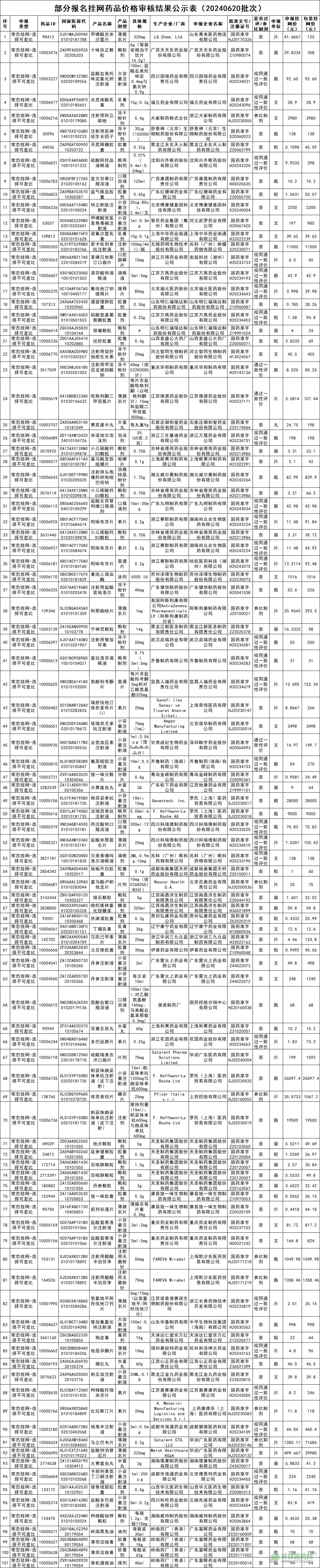 附件.部分新增報名掛網(wǎng)藥品價格審核結(jié)果公示表(20240620批次).xlsx