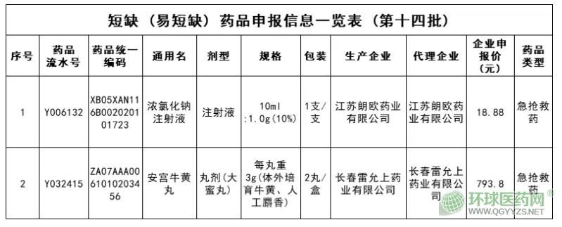 短缺(易短缺)藥品合計2個,涉及江蘇朗歐藥業(yè)有限公司的濃氯化鈉注射液、長春雷允上藥業(yè)有限公司的安宮牛黃丸(詳見附件2);