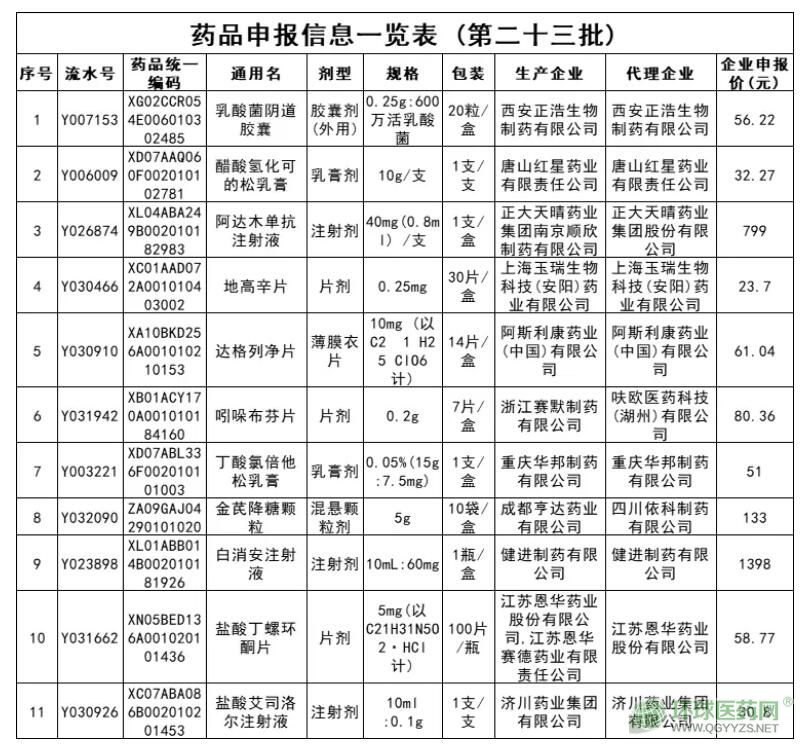陽光掛網藥品合計11個,涉及乳酸菌陰道膠囊等11個品種和阿斯利康藥業(yè)(中國)有限公司等11家生產企業(yè)、正大天晴藥業(yè)集團股份有限公司等11家代理企業(yè)(詳見附件3);