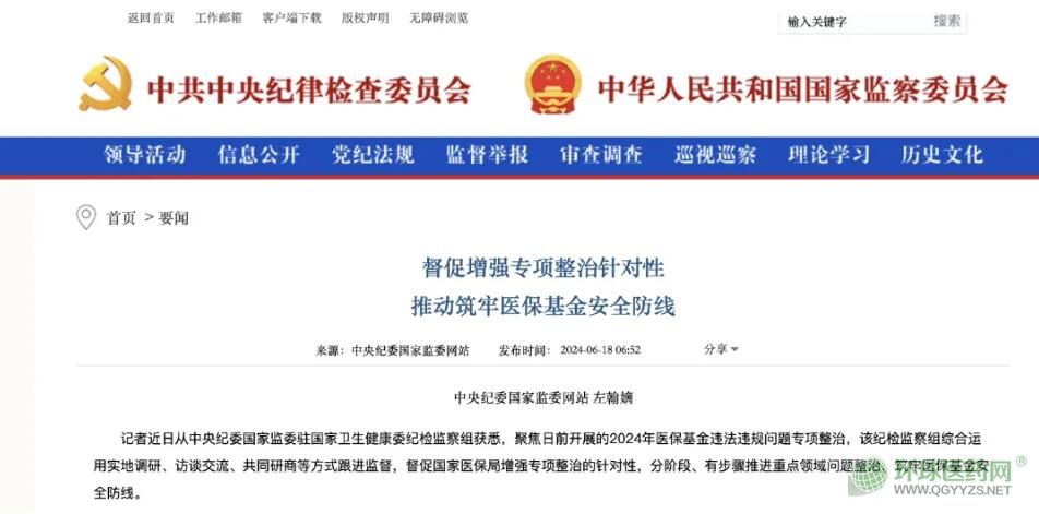 賽柏藍(lán)經(jīng)查詢發(fā)現(xiàn),6月18日,中央紀(jì)委國(guó)家監(jiān)委發(fā)布的《督促增強(qiáng)專項(xiàng)整治針對(duì)性推動(dòng)筑牢醫(yī);鸢踩谰》提及,駐國(guó)家衛(wèi)生健康委紀(jì)檢監(jiān)察組督促國(guó)家醫(yī)保局增強(qiáng)專項(xiàng)整治的針對(duì)性,分階段、有步驟推進(jìn)重點(diǎn)領(lǐng)域問題整治,筑牢醫(yī);鸢踩谰;駐國(guó)家衛(wèi)生健康委紀(jì)檢監(jiān)察組督促國(guó)家醫(yī)保局結(jié)合全國(guó)醫(yī)藥領(lǐng)域腐敗問題集中整治中發(fā)現(xiàn)的突出問題,圍繞欺詐騙保頻發(fā)高發(fā)領(lǐng)域,制定檢查指南,加強(qiáng)業(yè)務(wù)培訓(xùn),指導(dǎo)各地有的放矢開展整治。