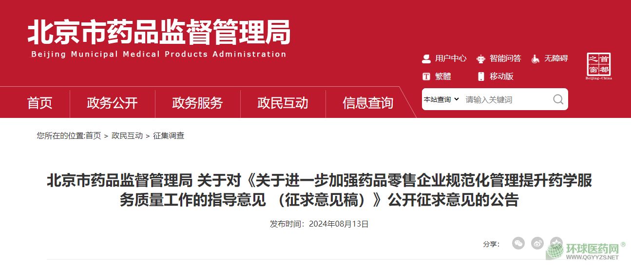 近日,北京藥監(jiān)局發(fā)布《關(guān)于進(jìn)一步加強(qiáng)藥品零售企業(yè)規(guī)范化管理提升藥學(xué)服務(wù)質(zhì)量工作的指導(dǎo)意見 (征求意見稿)》,進(jìn)一步加強(qiáng)藥品零售企業(yè)規(guī)范化管理,保障公眾用藥安全。