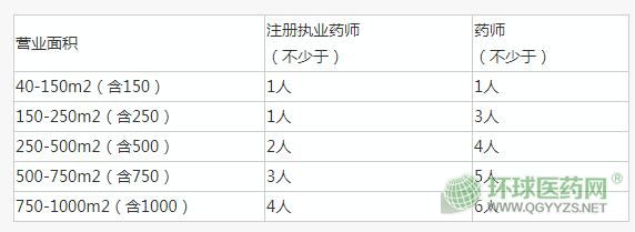 營業(yè)面積超過1000m2的,每當(dāng)增加250m2,至少應(yīng)增加注冊執(zhí)業(yè)藥師和藥師各1名。