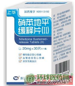 硝苯地平緩釋片類別:血液循環(huán)用藥, 心腦血管類藥物