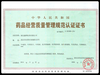 - 藥品經(jīng)營質(zhì)量管理規(guī)范認(rèn)證證書