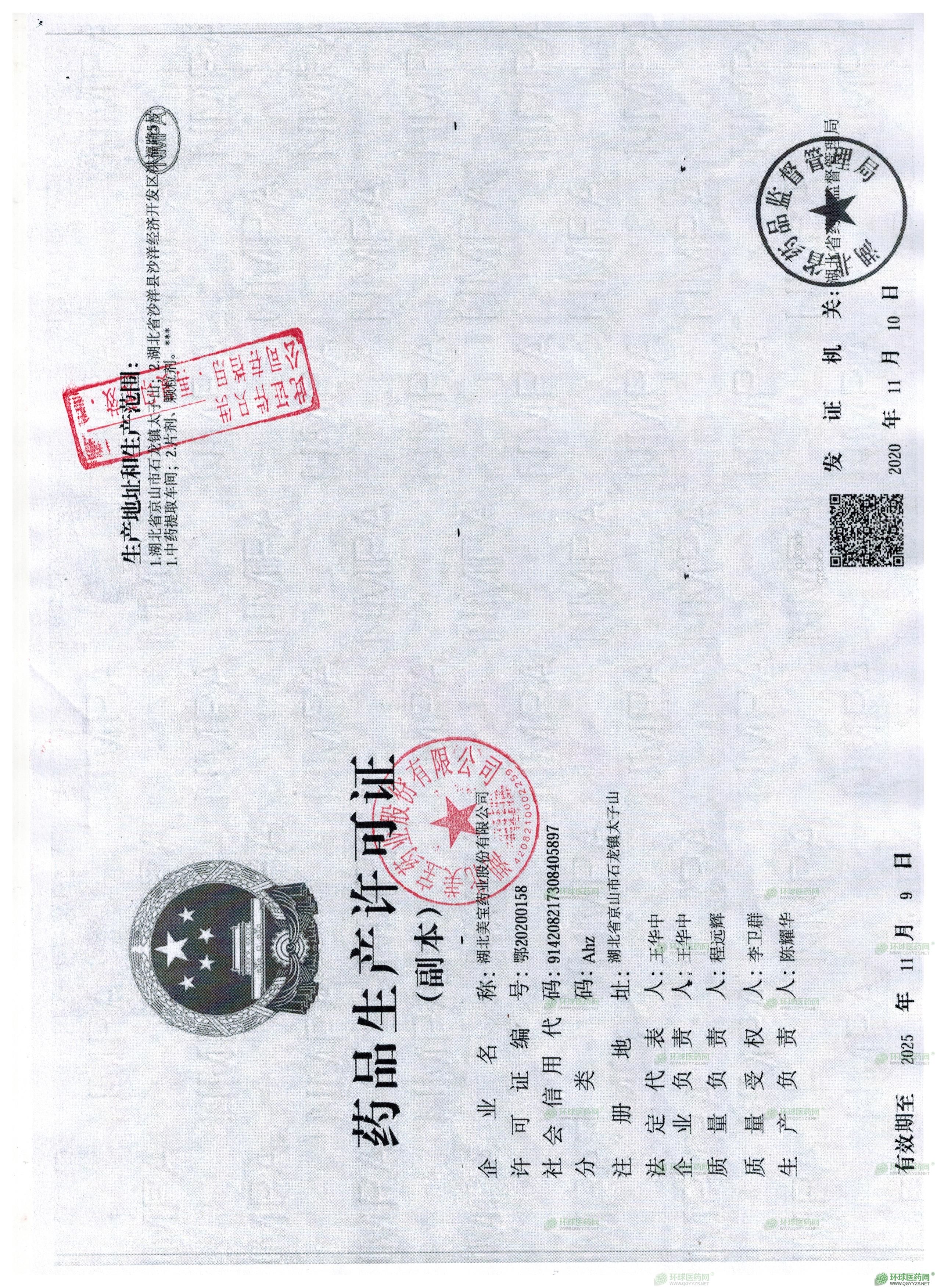 生產(chǎn)范圍: 1.湖北省京山市石龍鎮(zhèn)太子山;2.湖北省沙洋縣沙洋經(jīng)濟(jì)開發(fā)區(qū)洪福路5號 1.中藥提取車間;2.片劑、顆粒劑。***