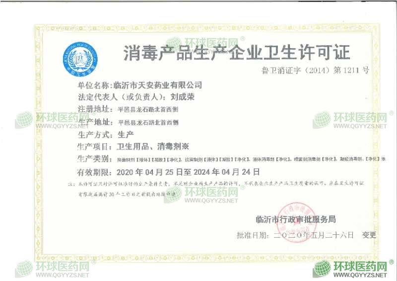 - 消毒產(chǎn)品許可證