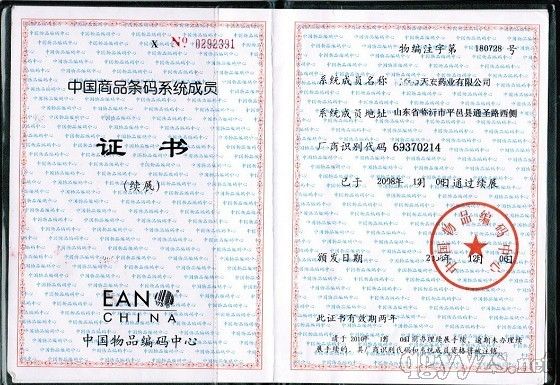- 商品條碼系統(tǒng)成員證書(shū)