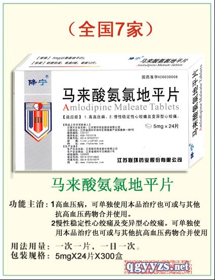 - 馬來酸氨氯地平片 批準(zhǔn)文號: 國藥準(zhǔn)字H20030006規(guī) 格: 5mg(按C20H25ClN2O5計)