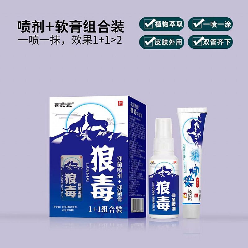- 狼毒抑菌噴劑軟膏組合裝 批準文號: 贛衛(wèi)消證字2020第C039號規(guī) 格: 60ml+20g
