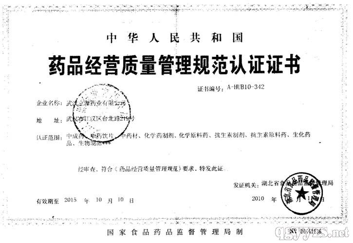 - 藥品經(jīng)營(yíng)質(zhì)量管理規(guī)范認(rèn)證證書(shū)