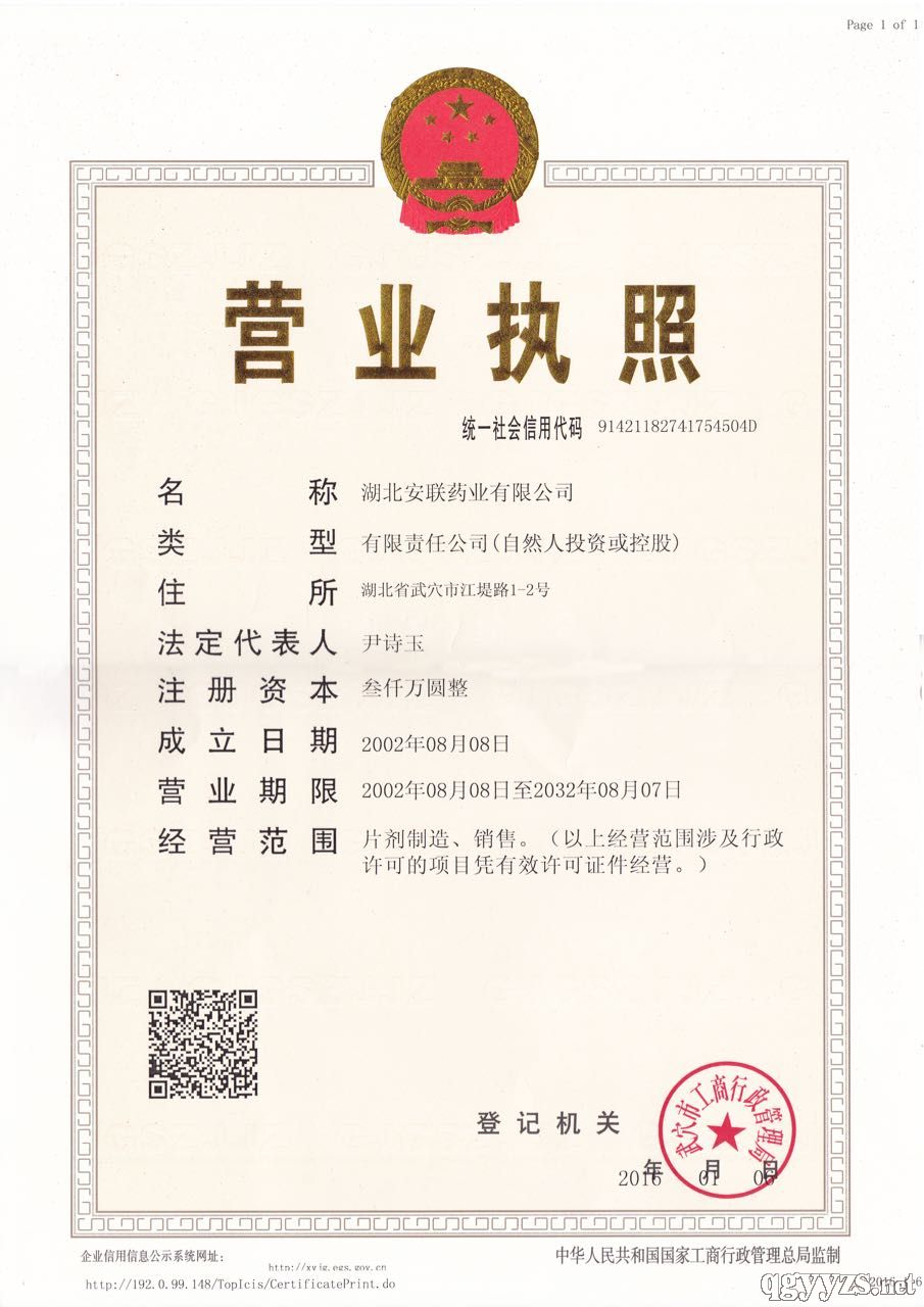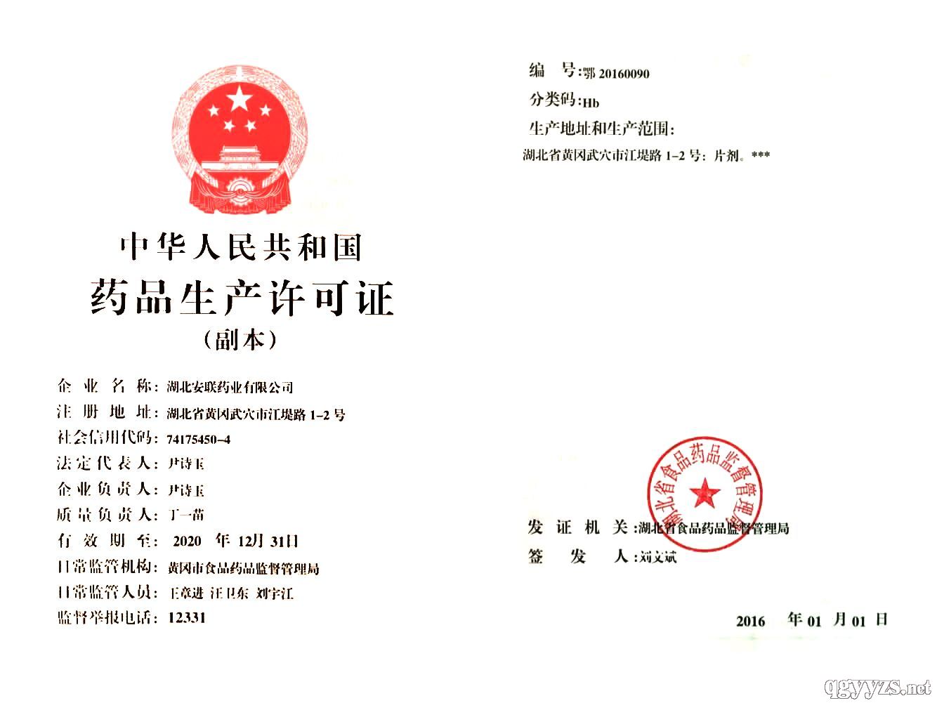 生產(chǎn)范圍: 湖北省武穴市江堤路1-2號(hào) 片劑。***