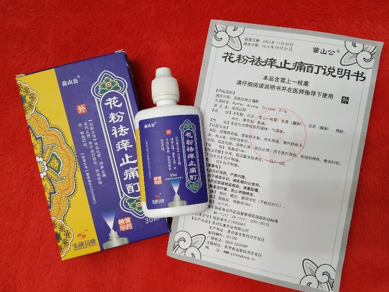 苗山公®花粉祛癢止痛酊源于云貴高原苗族古方,原名腫癢一抹靈、太白仙水、神風(fēng)油。由天花粉、雪上一枝篙、白芷、白鮮皮、祖師麻、冰片、樟腦等中藥組成。氣清香,具有清熱解毒、活血化瘀、消腫止痛、祛風(fēng)止癢之功效。