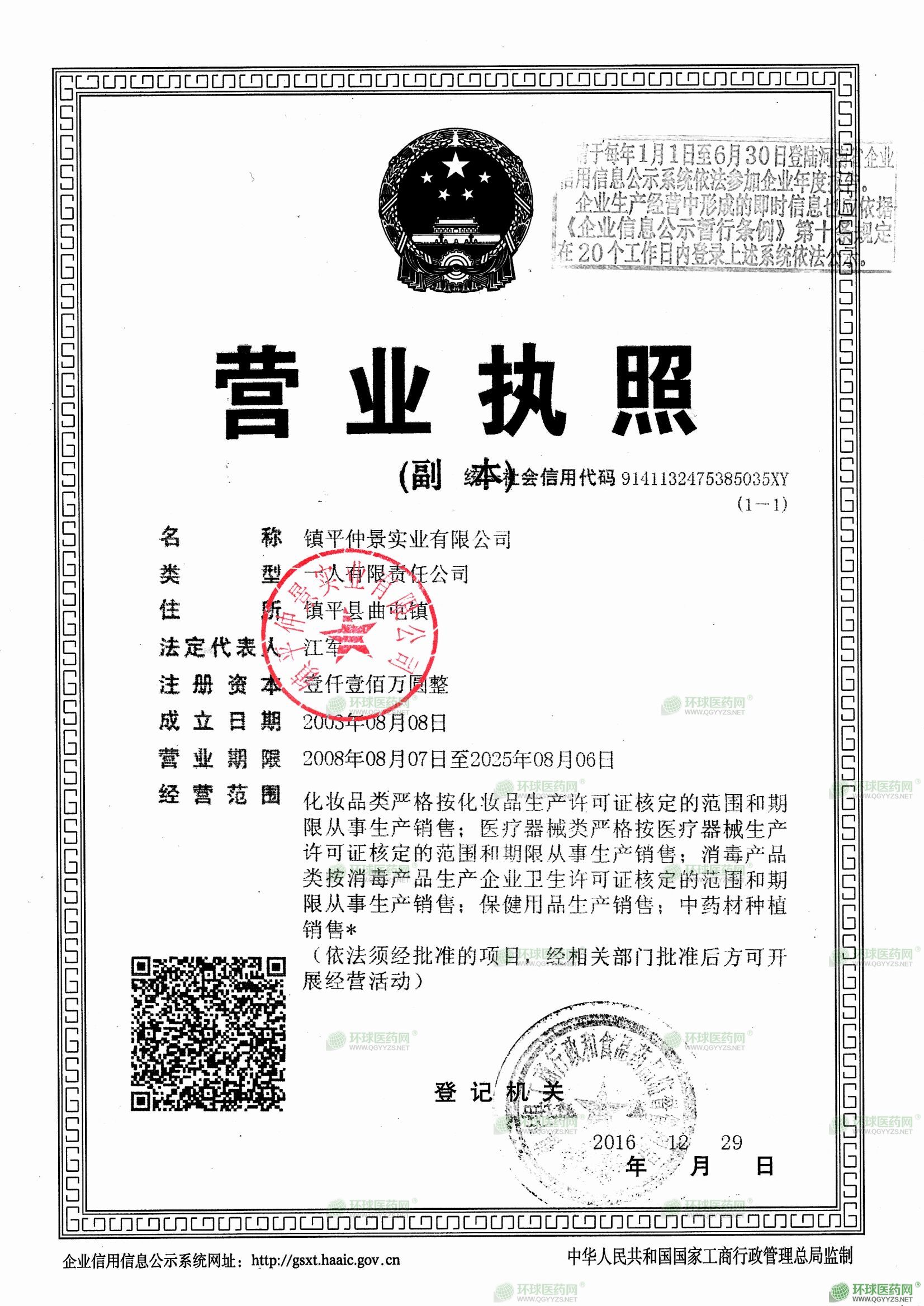 鎮(zhèn)平仲景實(shí)業(yè)有限公司創(chuàng)建于1988年,其前身是“鎮(zhèn)平縣仲景藥業(yè)有限公司”。從事“化妝品”、“醫(yī)療器械”、“消毒劑”生產(chǎn)銷售和中藥材的種植銷售。集研發(fā)、生產(chǎn)、銷售為一體,經(jīng)營風(fēng)格始終如一,不求產(chǎn)量,只求質(zhì)量。我們從未完美,但一直在努力。