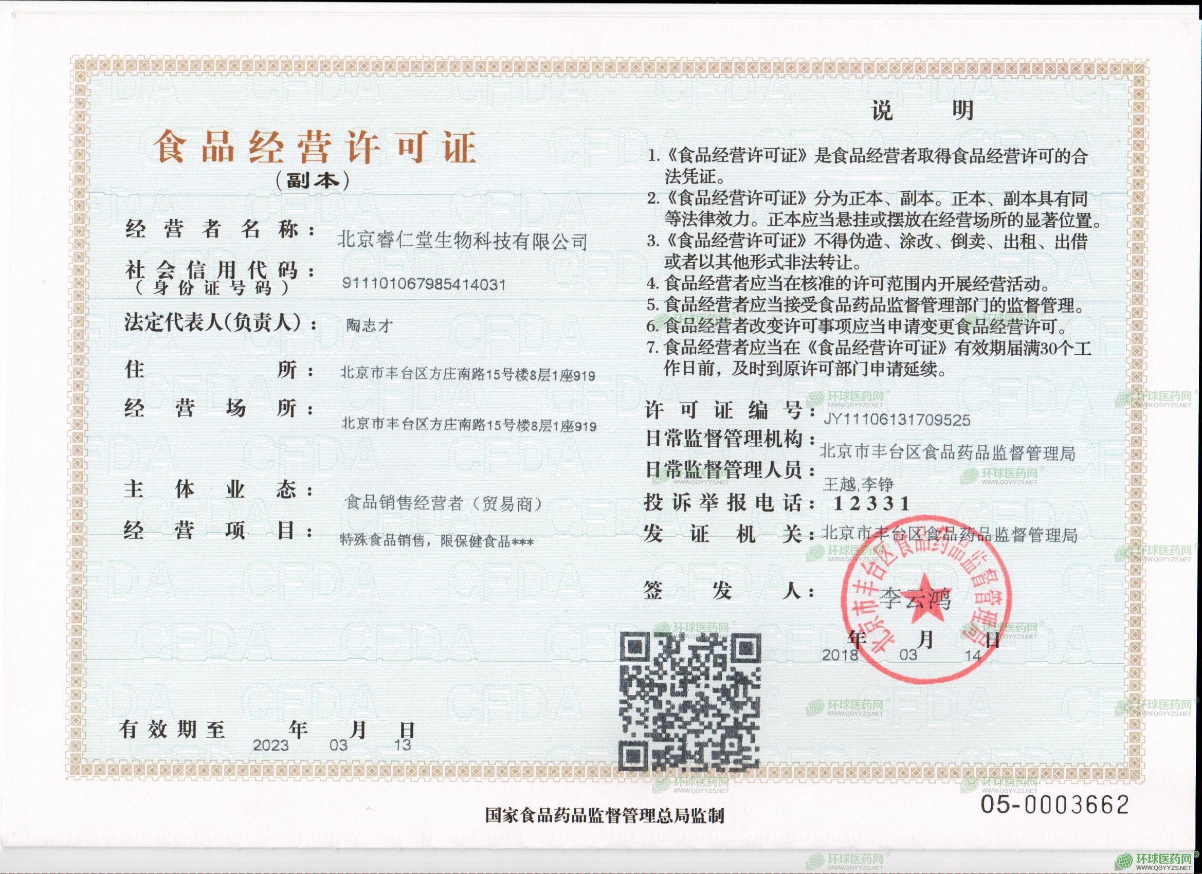 北京睿仁堂生物科技有限公司成立于2007年,自成立以來一直致力于醫(yī)藥推廣、醫(yī)療器械經(jīng)營(yíng)、保健食品研發(fā)銷售等業(yè)務(wù)。