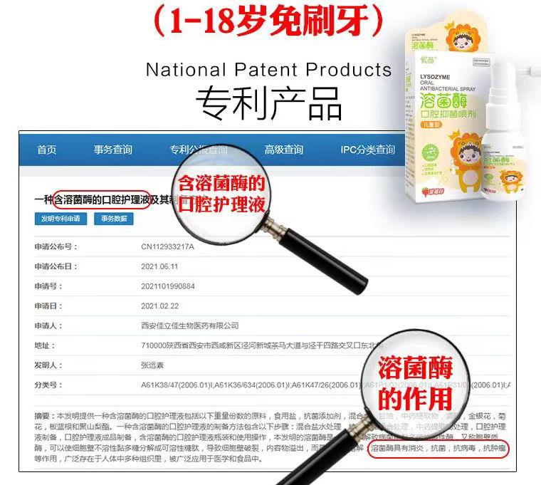 溶菌酶口腔抑菌噴劑是國(guó)家專利產(chǎn)品,專利號(hào):202110199088.4
