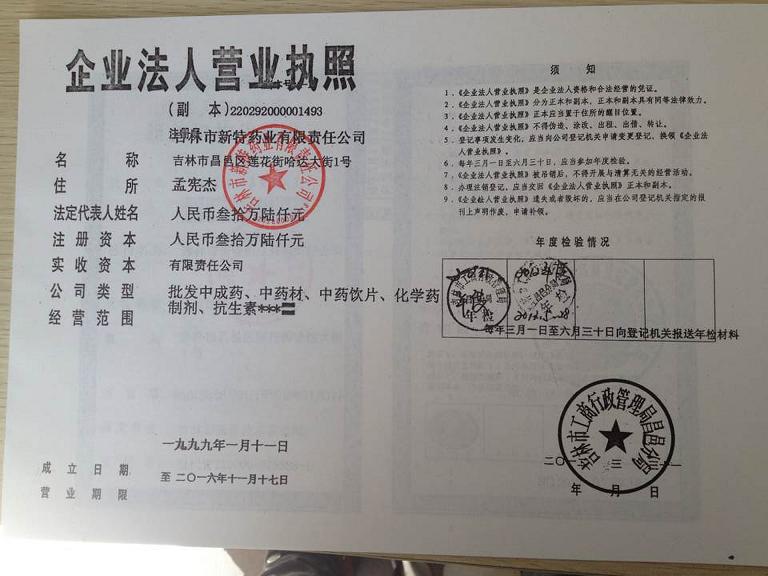 吉林市新特藥業(yè)有限責任公司創(chuàng)建于1956年,原稱吉林市醫(yī)藥公司,1998年企業(yè)改制設立吉林市新特藥業(yè)有限責任公司,是吉林地區(qū)國有參股的醫(yī)藥商業(yè)企業(yè),具有悠久的藥品經銷歷程、優(yōu)良的傳統(tǒng)、良好的市場信譽。公司現(xiàn)有員工40余人,其中80%具有大專以上學歷及**專業(yè)技術職稱,具有完整的質量**體系及產品檢驗設施、擁有穩(wěn)定的銷售網絡,生產企業(yè)平臺及可靠的售后服務保障。公司經營產品主要以吉林隆泰制藥集團藥品和通化長城藥業(yè)產品為主導,同時經營全國各醫(yī)藥廠家2000余個品種。公司經營范圍:化學藥制劑、中成藥、中藥飲片、中藥材