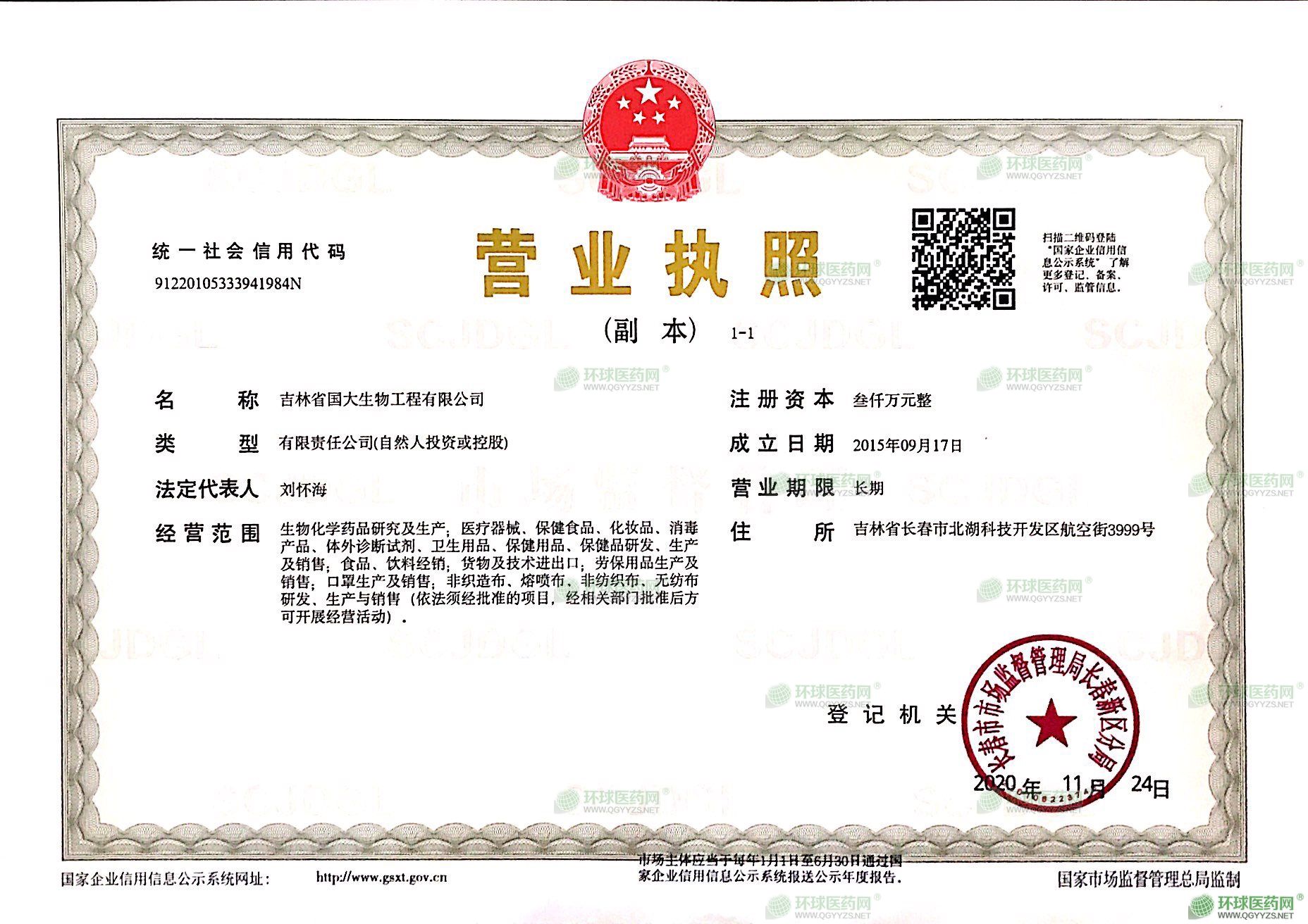 國大生物一家集研發(fā)、生產、銷售和售后服務于一體的大型綜合性生物醫(yī)藥生產企業(yè)。公司坐落于長春新區(qū)中韓合作區(qū)示范區(qū),(北國春城)長春新區(qū),占地面積30000m2,其中辦公樓4000m2,倉庫10000m2,生產車間12000m2,旗下同時擁有吉林省國大生物工程有限公司、吉林省國大制藥有限公司,吉林省國大醫(yī)藥物流有限公司。國大生物不斷探索高質量的發(fā)展路徑,在產品技術、研發(fā)、管理機制上正持續(xù)努力突破,讓國大生物成為一個值得信賴的、創(chuàng)新的全球化醫(yī)藥健康且也,國大生物總部設在吉林省長春市,并在北京、江蘇、上海等地設置分支機構。并與國內數(shù)十家知名藥企結為長久戰(zhàn)略合作伙伴,成為行業(yè)翹楚,具有一定影響力。