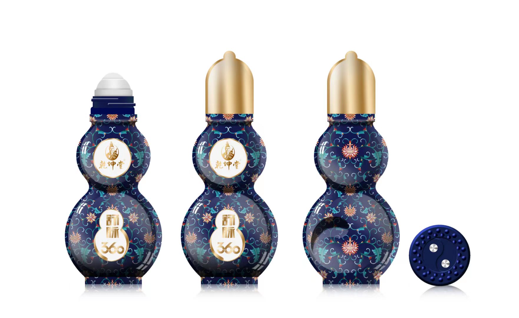 瓶蓋、瓶底為雙頭設(shè)計(jì),瓶底為陰陽(yáng)磁鐵,在使用產(chǎn)品的同時(shí)用瓶底磁療促進(jìn)吸收,按摩起來(lái)還能有促進(jìn)血液循環(huán)的作用。