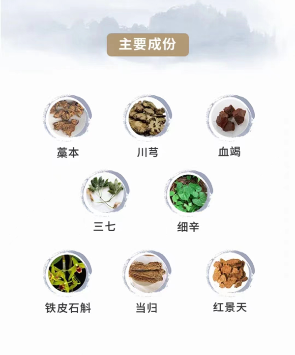 舒脈360舒活能量液的主要成分有藁本、鐵皮石斛、三七、血竭、川芎、紫荊皮、紅景天、延胡索、細(xì)辛、透骨草、夏天無(wú)、鉆山風(fēng)等,中藥草本萃取,成分溫和。