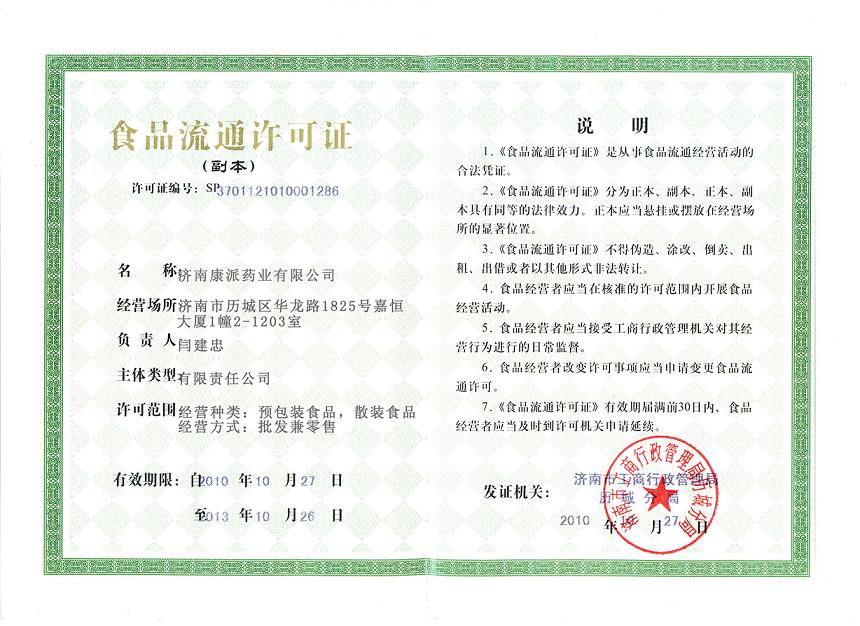 - 食品流通許可證