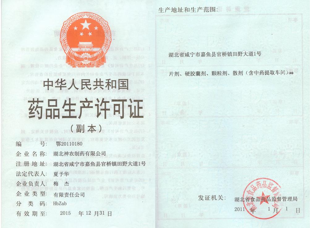 湖北神農(nóng)制藥有限公司是致力于中成藥新藥品種生產(chǎn)與研發(fā)的專(zhuān)業(yè)企業(yè),已于2005年8月28日通過(guò)國(guó)家GMP認(rèn)證。公司建成了6000平方米的固體制劑車(chē)間、前處理車(chē)間、提取車(chē)間和中心化驗(yàn)室,配備有生產(chǎn)散劑、片劑、顆粒劑、膠囊劑四種劑型所需的全套機(jī)械設(shè)備和有關(guān)的質(zhì)量檢測(cè)儀器設(shè)施。公司擁有享受?chē)?guó)務(wù)院政府津貼的專(zhuān)家和一大批醫(yī)藥院校畢業(yè)的專(zhuān)業(yè)人才。