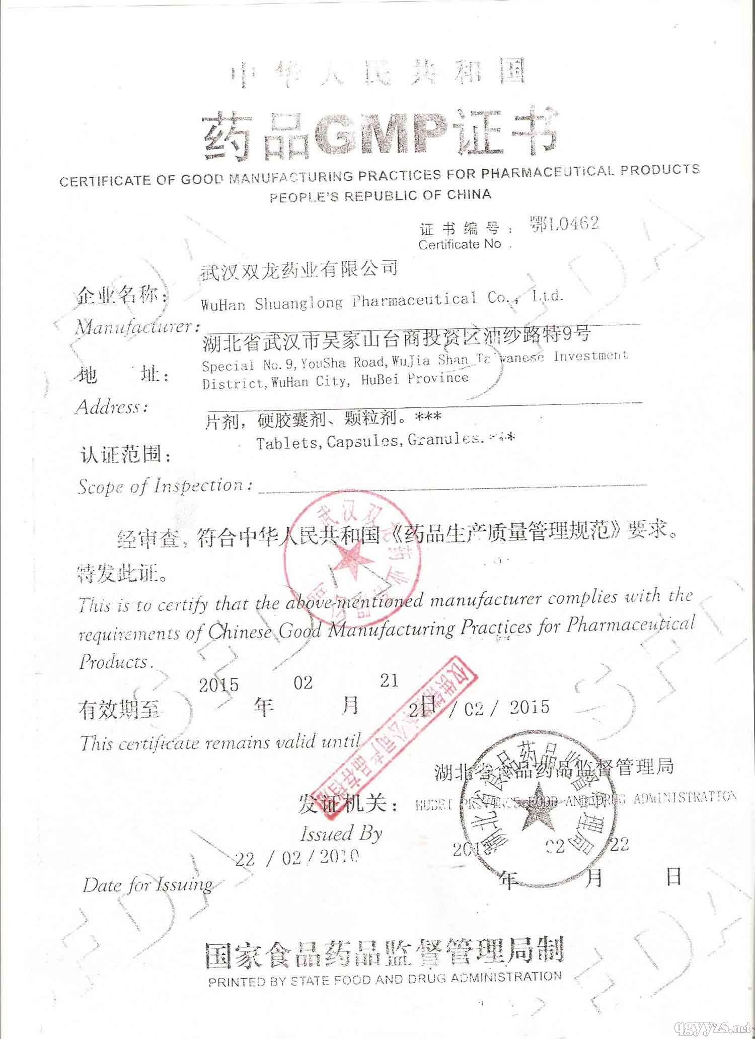 發(fā)證機(jī)關(guān): 湖北省藥品監(jiān)督管理局