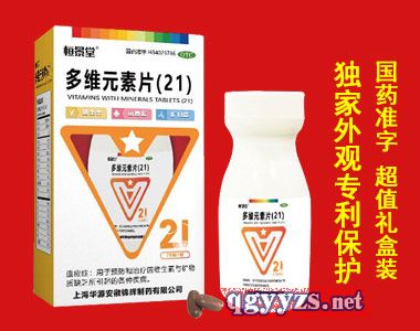 多維元素片(21)在補(bǔ)充多種維生素的同時(shí),還適用于預(yù)防和治療因維生素與礦物質(zhì)缺乏所引起的**疾病。
