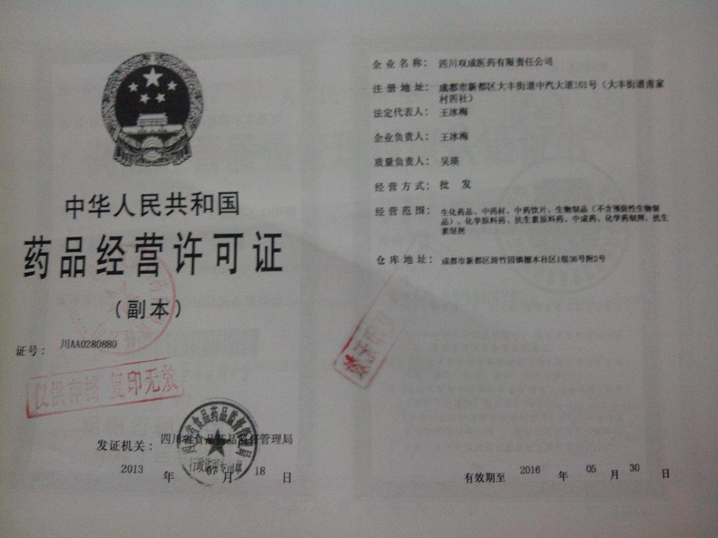 四川雙成醫(yī)藥有限責(zé)任公司是一家專業(yè)從事生化藥品、中藥材、中藥飲片、生物制品、化學(xué)原料藥、抗生素原料藥、中成藥、化學(xué)藥制劑、抗生素制劑等藥品批發(fā)的企業(yè)。公司成立于2011年,注冊(cè)資金1000萬(wàn)元,公司位于成都市醫(yī)藥企業(yè)中心地帶,即成都市龍橋鎮(zhèn)渭銀龍國(guó)際醫(yī)藥批發(fā)市場(chǎng)內(nèi),西接新成彭線,南連北新大道,交通便利。公司各崗位均配備了相應(yīng)的專業(yè)技術(shù)人才,嚴(yán)格按照國(guó)家新版GSP規(guī)定進(jìn)行管理,并于2015年通過了國(guó)家GSP認(rèn)證。