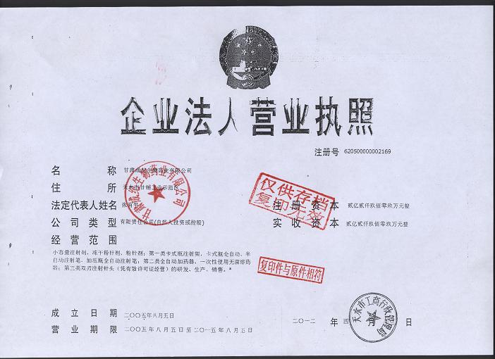 發(fā)證機關(guān): 甘肅省藥品監(jiān)督管理局
