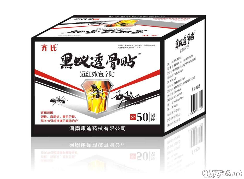 - 黑蟻透骨遠(yuǎn)紅外治療貼 批準(zhǔn)文號(hào): 豫食藥監(jiān)械生產(chǎn)許20150118規(guī) 格: 9cm*12cm*5貼