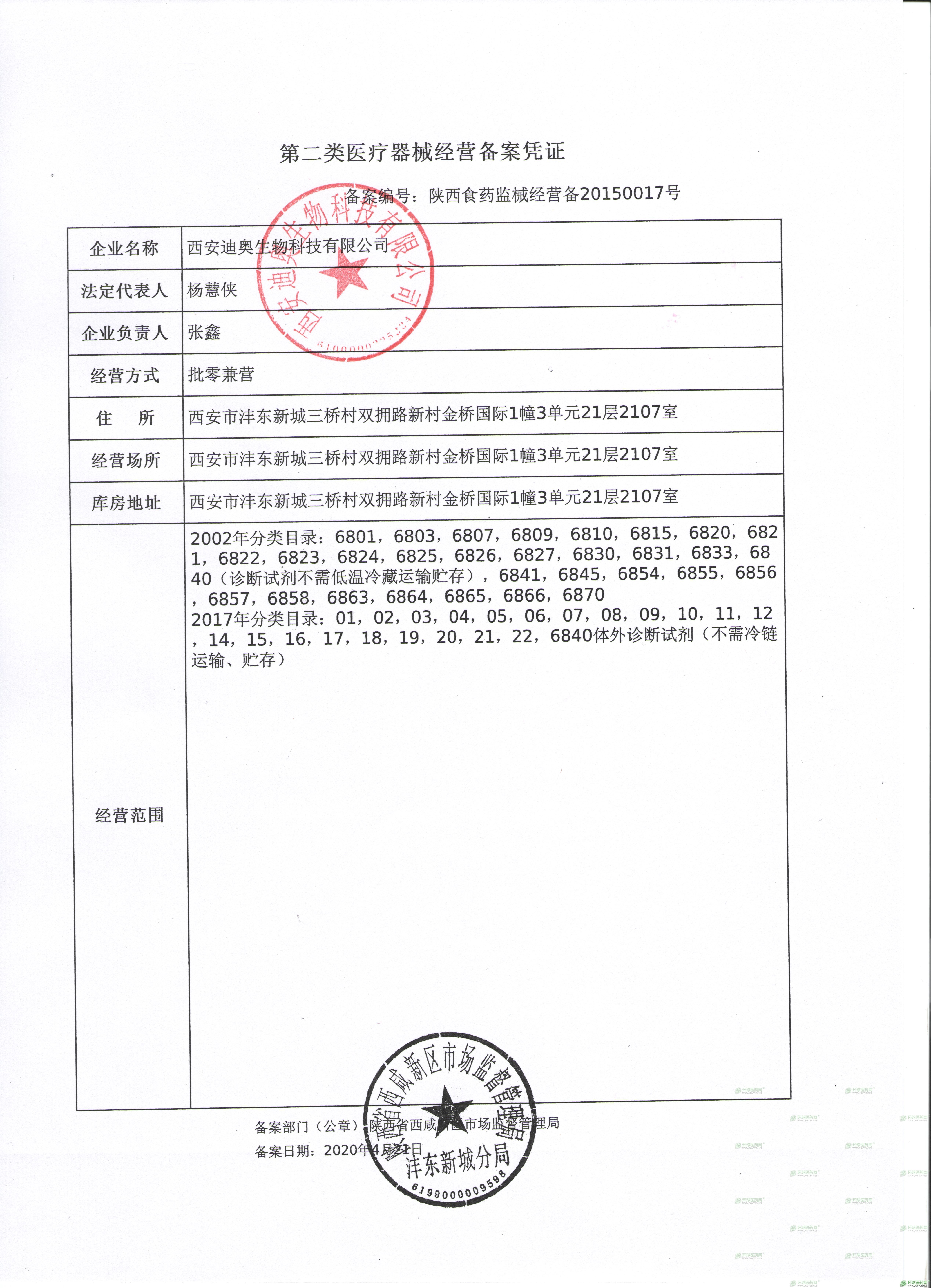 [企業(yè)法人]:西安迪奧生物科技有限公司