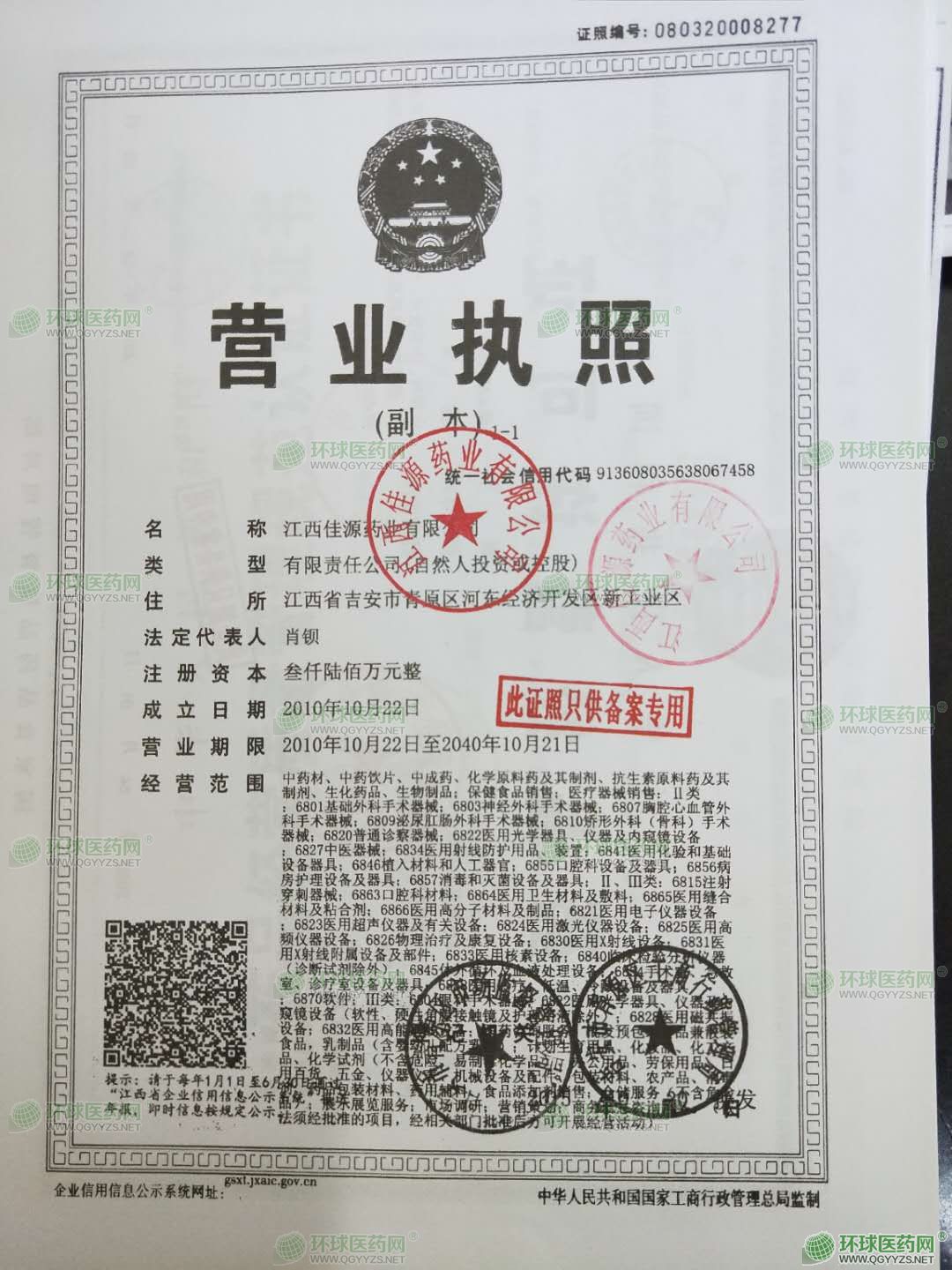 [企業(yè)法人]:江西佳源藥業(yè)有限公司