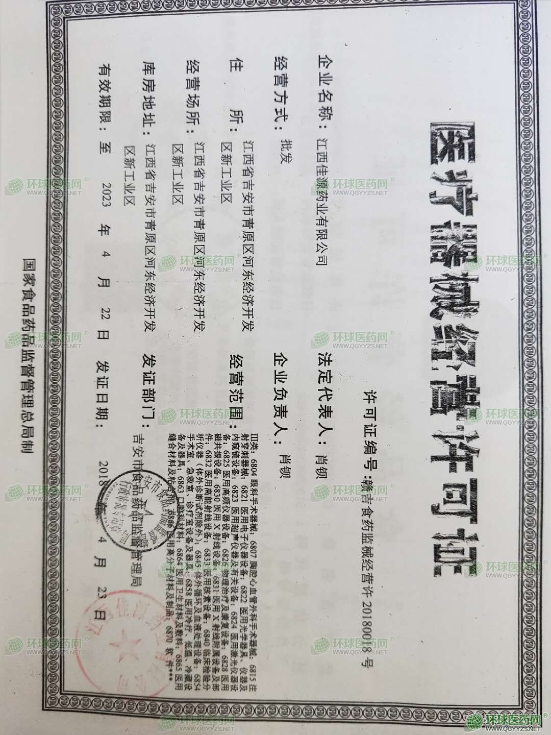 - 醫(yī)療器械經(jīng)營(yíng)許可證