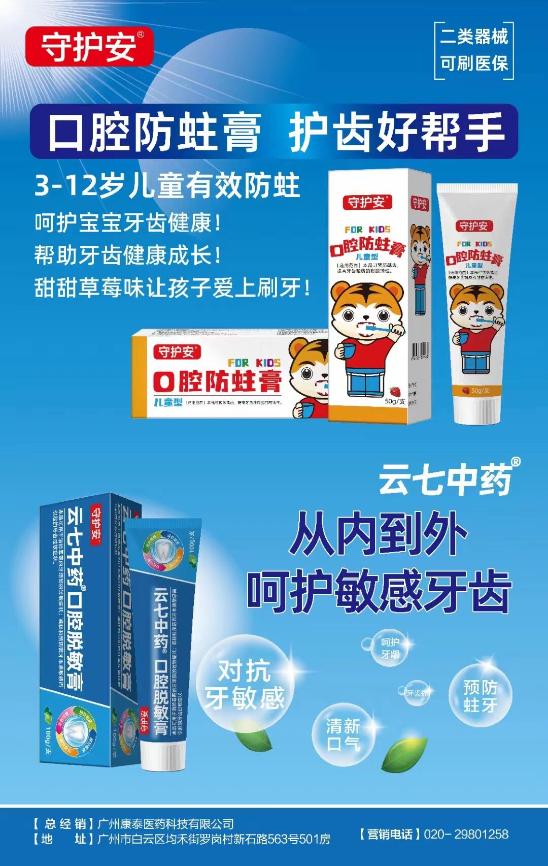 目前,廣州康泰醫(yī)藥科技有限公司的云七中藥口腔脫敏膏和口腔防蛀膏隆重上市,愿與有實(shí)力、有想法的代理商精誠(chéng)合作,誠(chéng)信共贏!