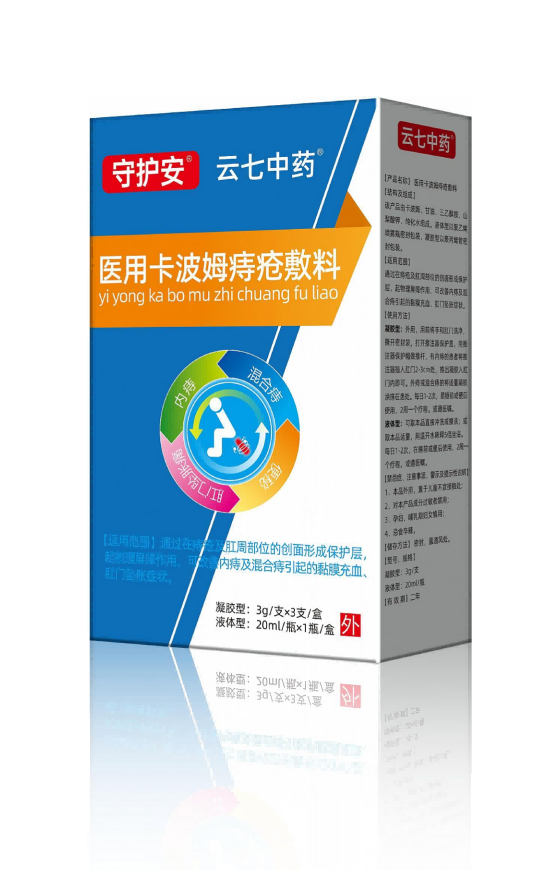 守護安 云七中藥™醫(yī)用卡波姆痔瘡敷料二類械準字文號!目前市場上的一款組合套裝(噴劑+凝膠),適用于內(nèi)痔 外痔 混合痔,效果更**,類似于生命組織的水溶性凝膠,附著于痔瘡創(chuàng)面,可形成光滑的保護膜,保持創(chuàng)面與外界環(huán)境隔離,防止感染,增強病變部位血液循環(huán),抑制病原微生物,避免二次交叉感染,改善病變部位微環(huán)境,有較強的的吸附功能!