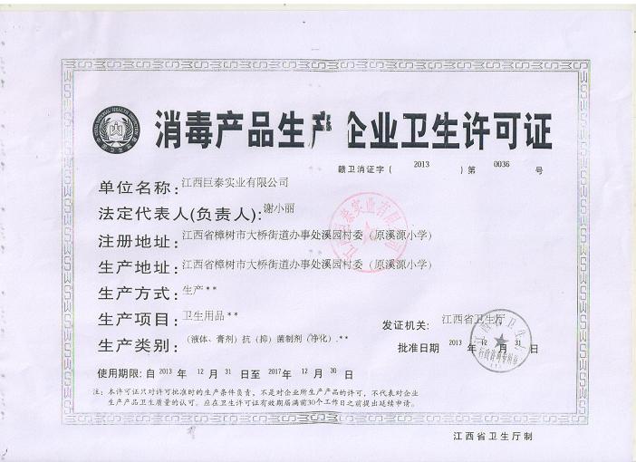 - 消毒產(chǎn)品生產(chǎn)企業(yè)衛(wèi)生許可證