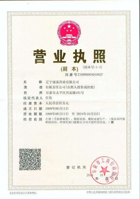 [企業(yè)法人]:遼寧康泰藥業(yè)有限公司