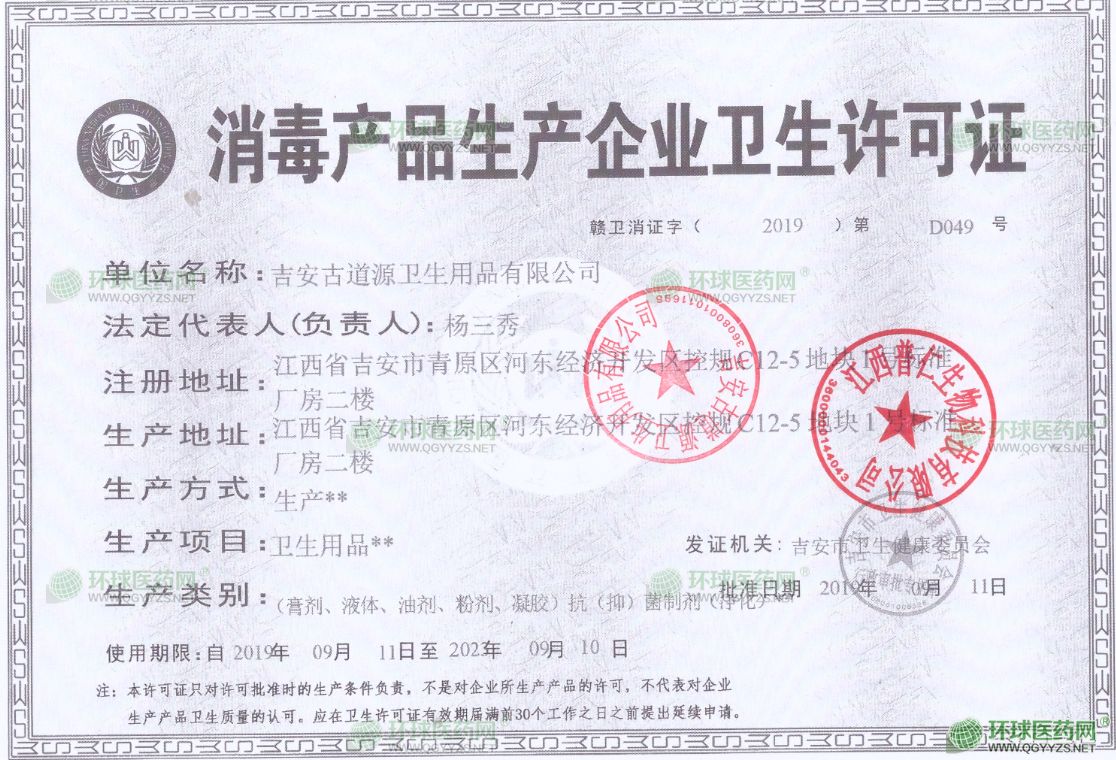 - 消毒產(chǎn)品生產(chǎn)許可證