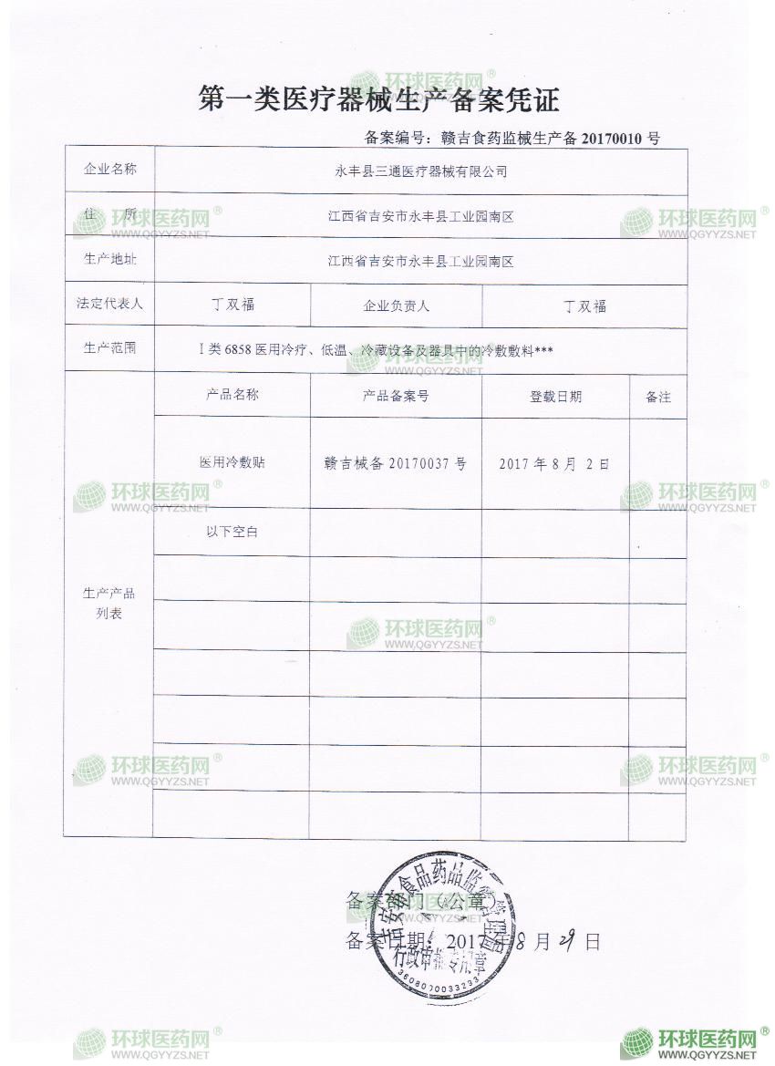 - 一類醫(yī)療器械備案憑證