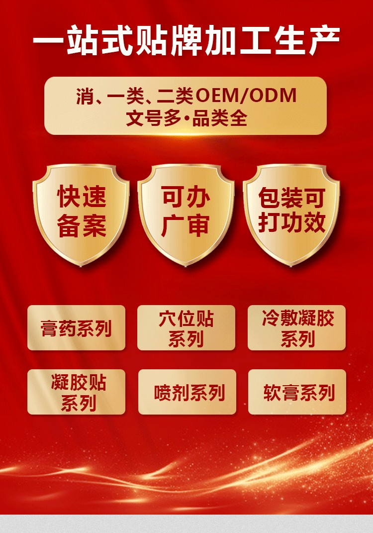 部分工序協(xié)作:支持灌裝、包裝等環(huán)節(jié)的外包,靈活滿足客戶特定需求。例如,某縣級連鎖診所貼牌“款”頸椎冷敷貼,成本0.8元/貼,掃碼價28元,復(fù)購率提升90%。