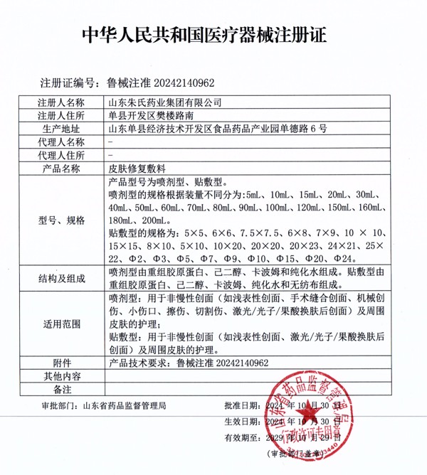 山東皇圣堂藥業(yè)有限公司深耕皮膚醫(yī)療領(lǐng)域:皮膚修復(fù)敷料獲取醫(yī)療器械注冊證