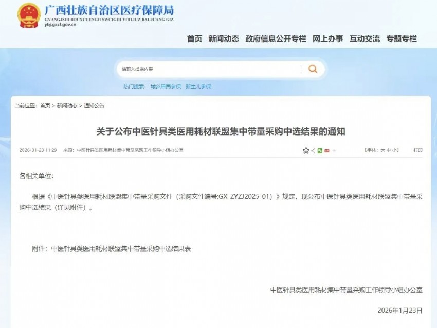 由廣西牽頭,聯(lián)合天津、河北、山西、內(nèi)蒙古等26省(含新疆生產(chǎn)建設(shè)兵團(tuán))組成超大型聯(lián)盟,覆蓋全國超70%的中醫(yī)藥服務(wù)市場(chǎng),堪稱中醫(yī)針具品類首次全國性大規(guī)模聯(lián)盟采購。