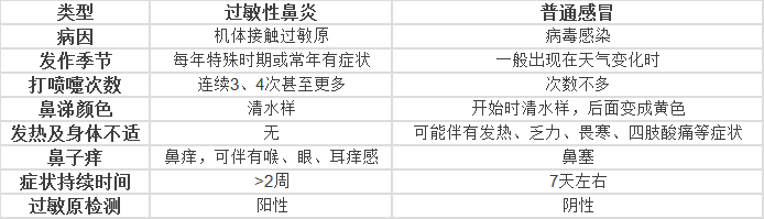 共同點(diǎn):鼻塞 打噴嚏 流鼻涕