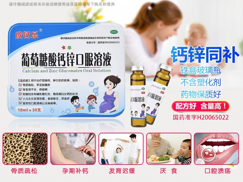 【規(guī)格】10ml。葡萄糖酸鈣600毫克、葡萄糖酸鋅30毫克與鹽酸賴氨酸100毫克。