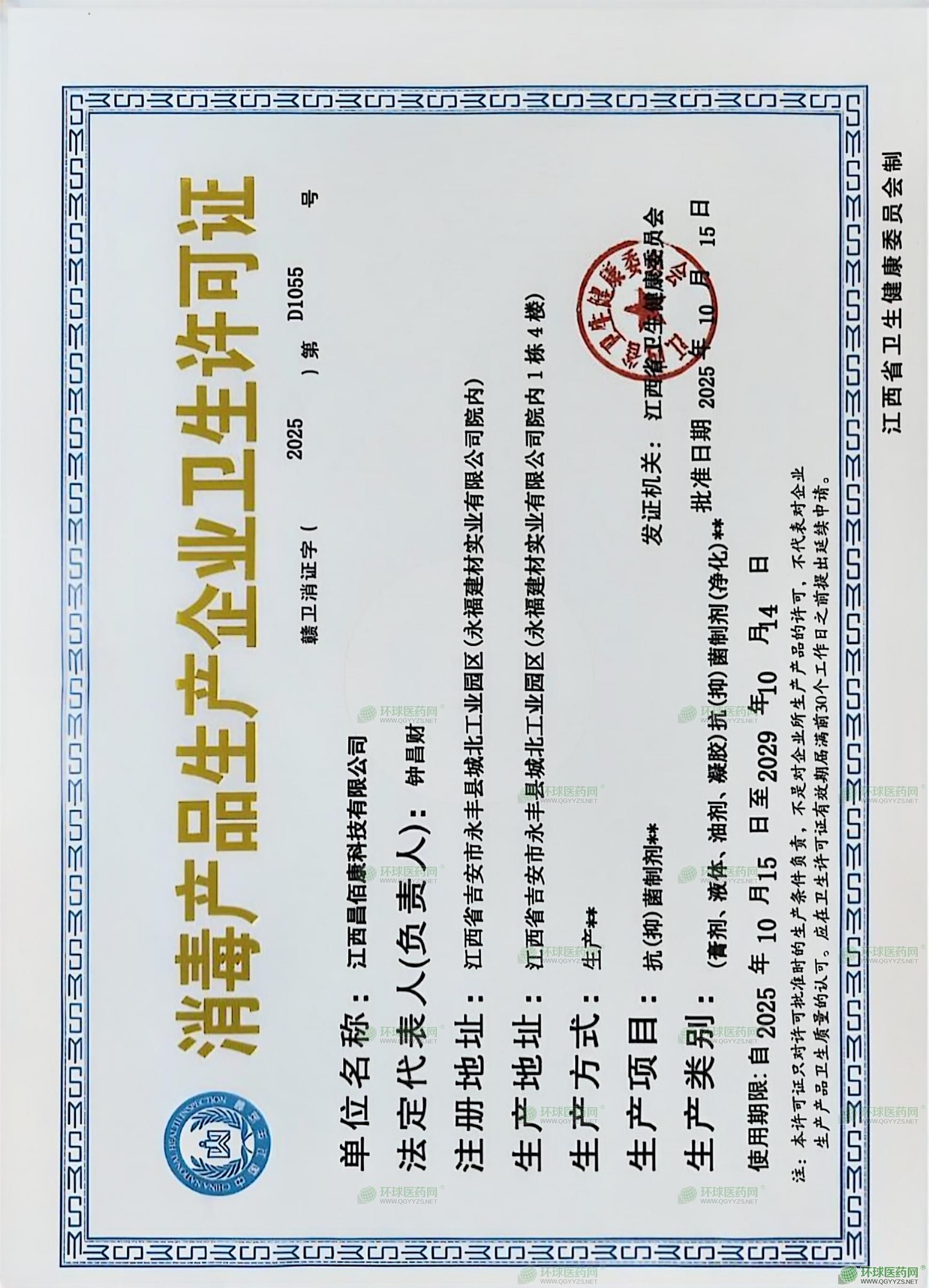 - 消毒產(chǎn)品生產(chǎn)許可證